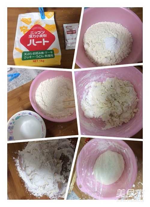面粉中加入泡打粉搅拌均匀后用温水和面。揉成面团醒面10分钟
