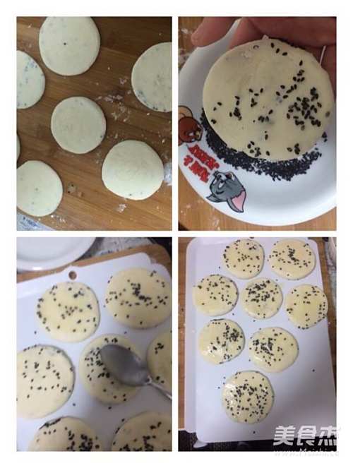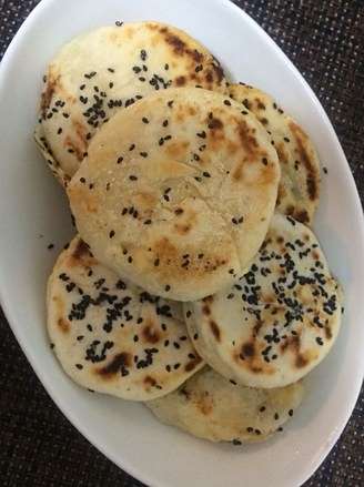 烧饼两面刷油面,依据个人喜好沾黑芝麻