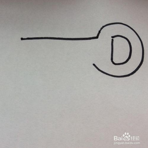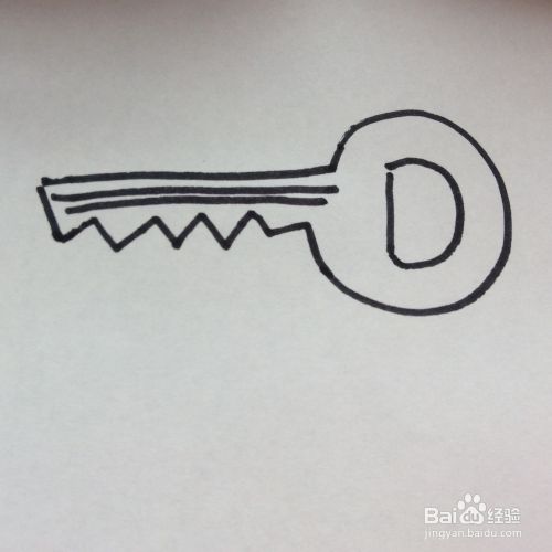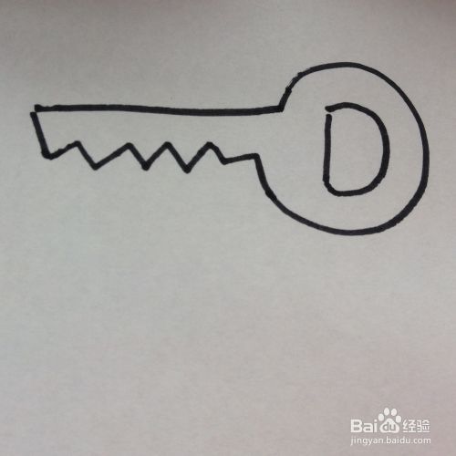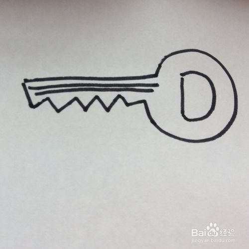 在钥匙的左侧上方画一道横线。钥匙的简笔画就完成了。