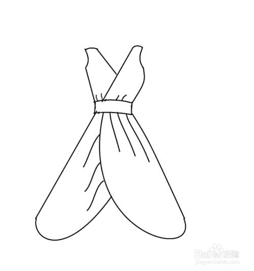 再接着,第五步,把裙子的纹理画出来,如图所示。