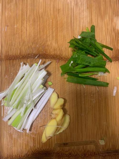 犯懒,少了一个步奏,没有爆香后把姜葱挑出来,害怕姜葱糊了,油温不够,结果肉炒的有点碎,但是味道是非常好的。