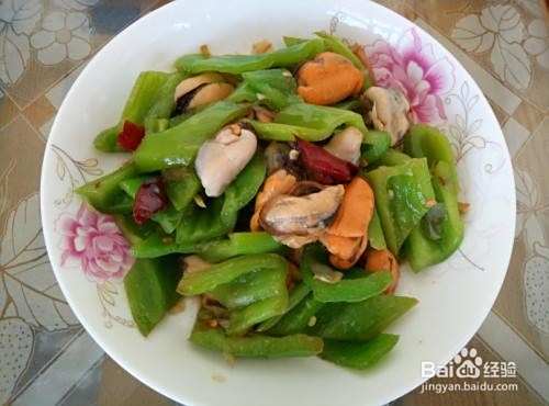 锅内放入适量盐,翻炒均匀后出锅盛盘。(海虹很鲜,不用放味精)