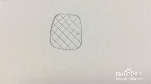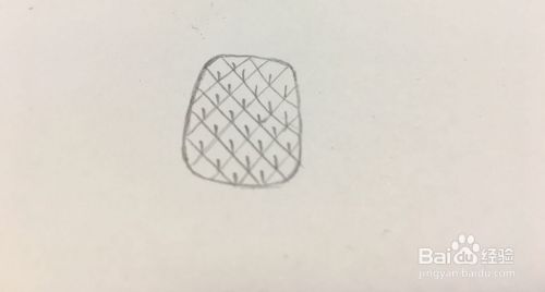 在这个椭圆形的中间的左上方向右下方画等距离的斜线;再从右上方向左下方画距离相同的斜线。