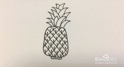 将画好的菠萝用黑色彩笔描边(也就是用黑色彩笔将铅笔盖住)。