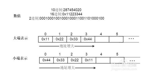 最高有效字节在最前面的方式称为大端法,例如:0x1122334455,其存储方式为:0x00:11,0x01:22,0x02:33,0x03:44,0x04:55;