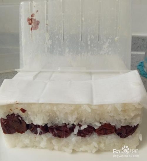 然后再铺一层红枣,再补一层糯米饭,根据喜好和需要可以再来几层都行。