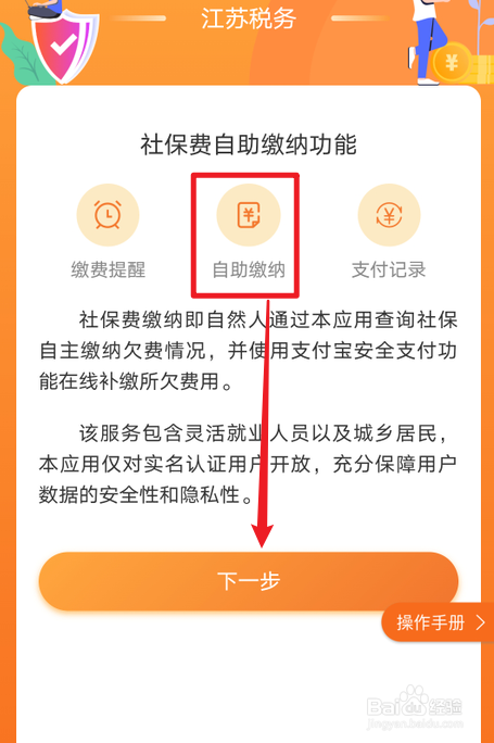 之后,在自助缴费页面点击下一步。