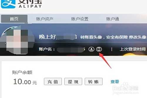 在支付宝个人首页中找到箭头所指的“手机”图标,并点击选择。