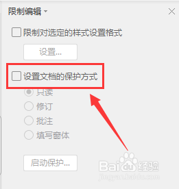 选择『设置文档的保护方式』
