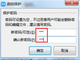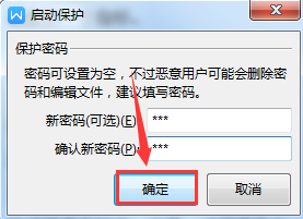 在『启动保护』对话框中录入密码,此处也可以不录入密码,如果不录入密码,在取消限制编辑时,也不用输入密码