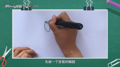 画一个竖着的椭圆,在上面画出鼻孔。