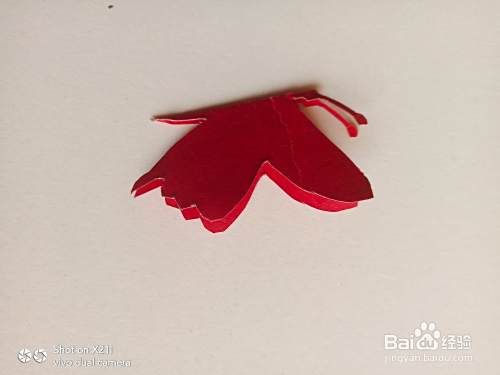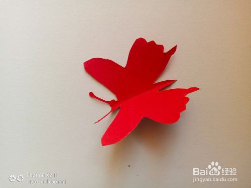 触角的部分有点细长,剪纸时要注意,不要剪破。蝴蝶的半只身体就剪完成了。