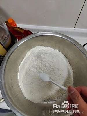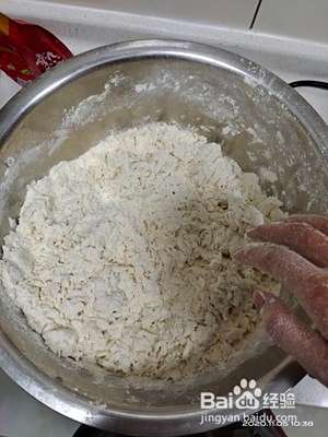 面粉2斤加入盐,小勺5-6勺,和面粉混合