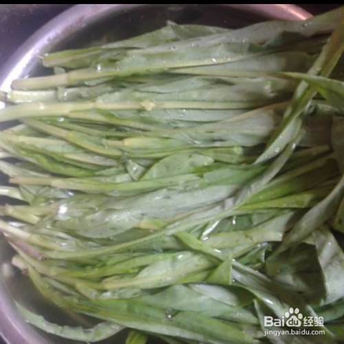 热锅下油,蒜爆一下,放1勺盐,切好的苦麦菜下锅翻炒,稍变软时候,放入适量的清水。大火烧开。
