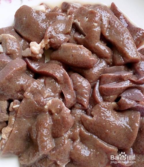 猪肝切小块,生姜切丝。放少许盐、花生油、生姜丝一起搅拌,腌制10分钟以上。