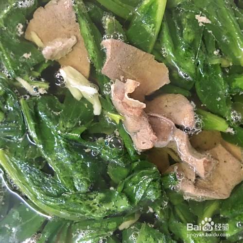 汤烧开后,放入腌好的猪肝,再次烧开后,加入盐、油调味便可。