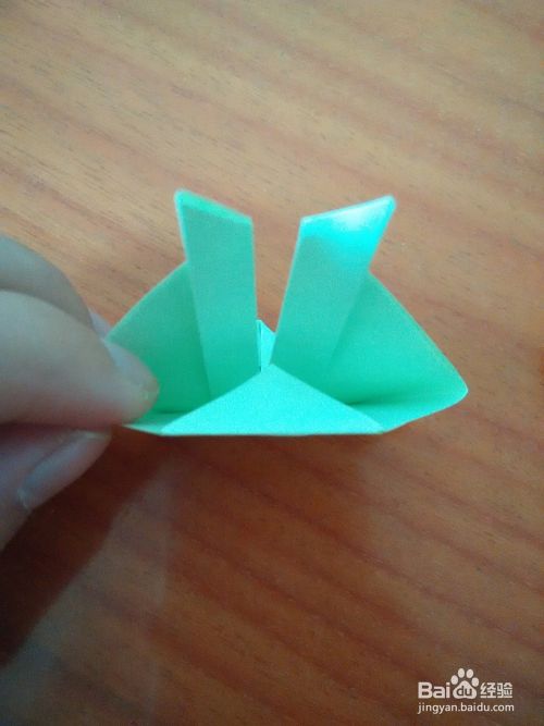 将左右两边的角折向中间的折痕,折出兔耳朵