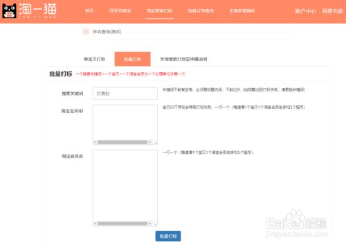如果想要打标的账号比较多,可点击旁边的批量打标,批量输入需要打标的淘宝账号(旺旺号),宝贝ID,以及关键词。