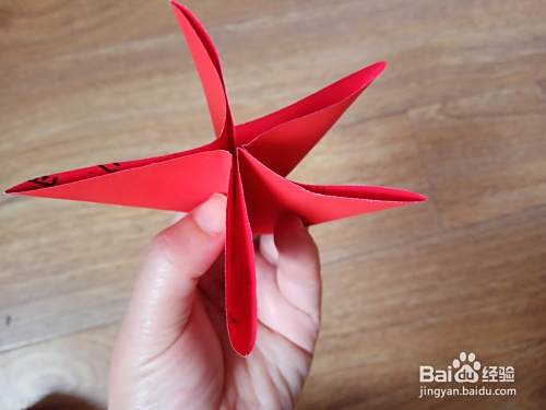 将五角中线用手轻轻按一按(不要按的太死),然后将每一个角向中心线折起,要按顺序向同一个方向折,如下图。