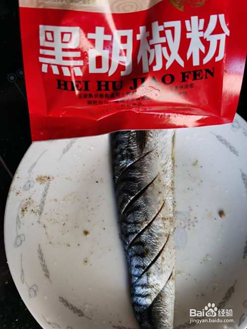抹上胡椒粉,盐,酒,缝隙和两面都要抹,抹均匀,腌制大概30分钟以上。