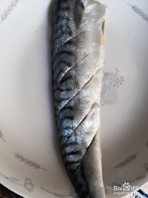 冷冻的马鲛鱼取出化冰,洗干净,肚子内黑色的皮撕掉,想要入味可以划几刀。