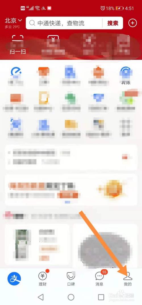 手机登录支付宝app,进入首页后,点击右下角”我的“