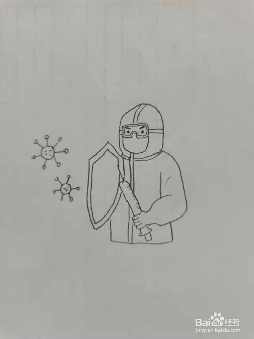 最后,画一个护盾作修饰,防疫人员简笔画,就完成了。