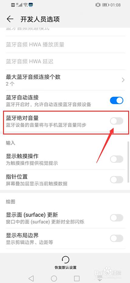 最后,我们将蓝牙绝对音量的开关给打开,就可以解决问题了。