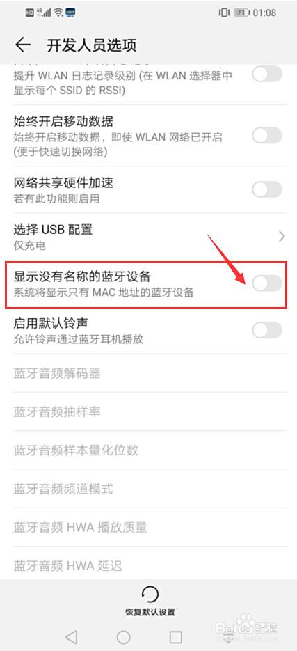 接着,我们将显示没有名称的蓝牙设备的开关给打开,