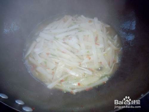 倒入萝卜继续煸炒