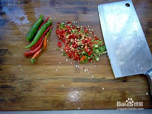 辣椒洗净剁烂