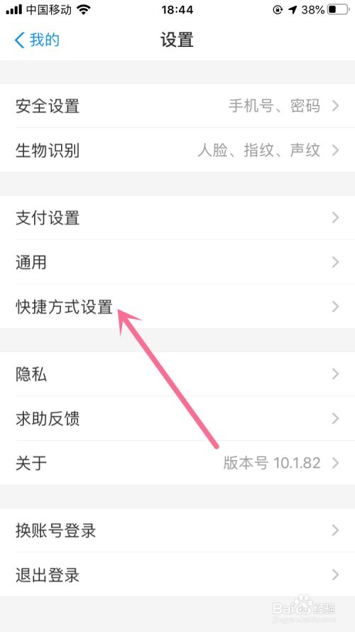 选择【支付宝】,选择【我的】导航栏;选择【设置】,选择【快捷方式设置】;选择【自己想要的快捷方式设置】。