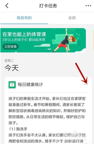 之后,点击要删除打卡任务右上角【...】。如下图所示: