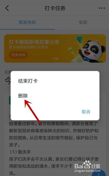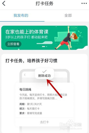 6.点击之后提示【删除成功】即可取消打卡。