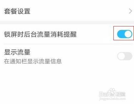 进入更多流量设置界面,关闭锁屏时后台流量消耗提醒开关就没有咚咚的声音了