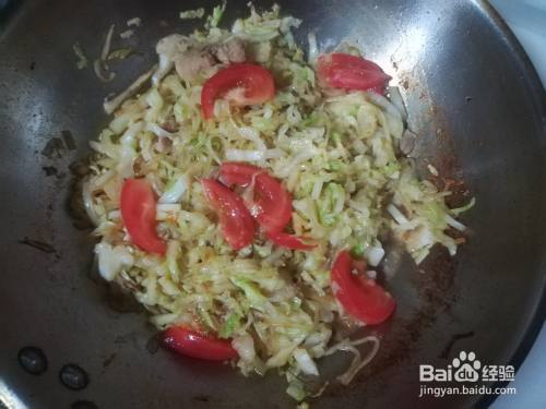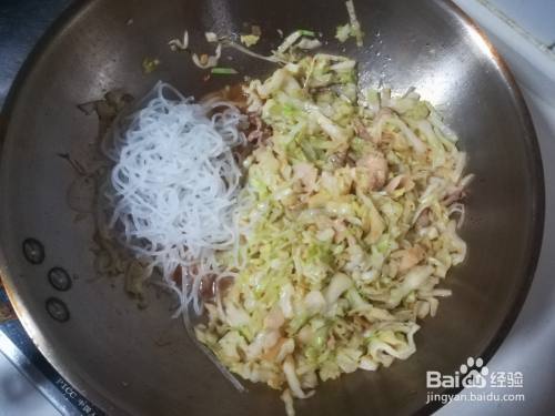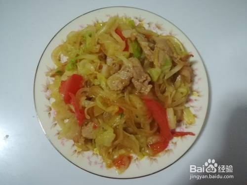 然后出锅装盘,这样一盘肉炒圆白菜粉条就做好了。
