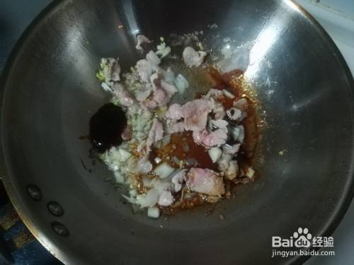 炒锅里倒入适量花生油,等油五成熟时,放入肉片炒至变色,再放入葱、姜、蒜煸炒出香味,加入盐,味极鲜酱油和蚝油调味。