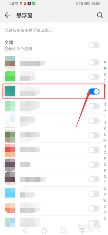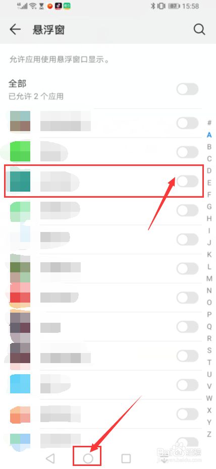 在权限管理设置界面,我们点击悬浮窗按钮,进入悬浮窗设置界面,
