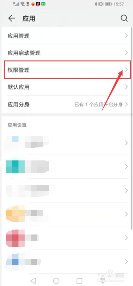 在应用设置界面,我们点击打开权限管理,进入权限管理设置界面,