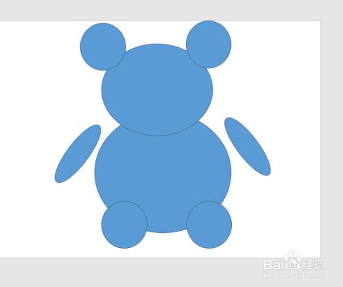 使用椭圆(只有椭圆),拖动大小,组合出小熊公仔的基本外观