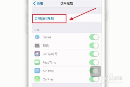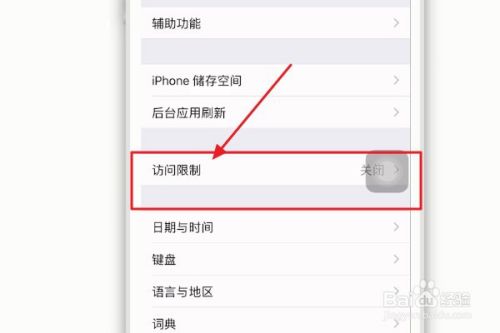 同样的操作,在【通用】功能中找到【访问限制】功能,如图所示。