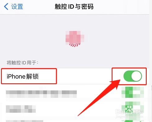 最后将【iPhone屏幕解锁】功能项设置为关闭即可。