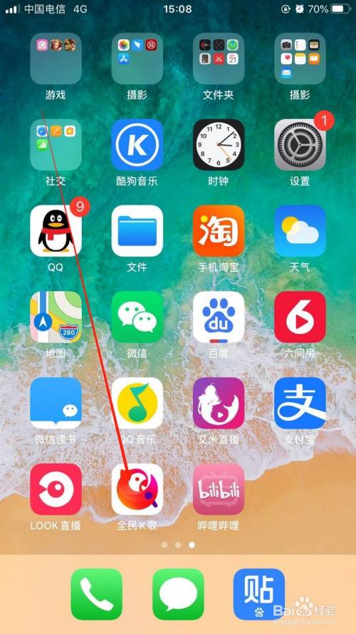 首先点击手机桌面全面K歌打开并登录成功,如下图