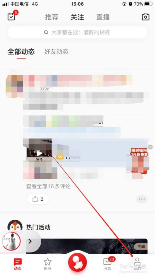 进入全民K歌主界面后点击下方工具栏中的“我的”打开,如下图