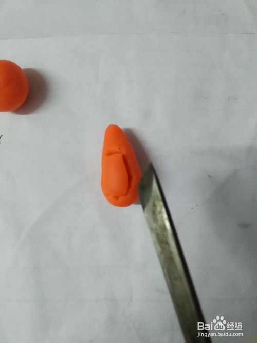 把一个球捏成水滴状。大小比着芭比娃娃的脚的尺寸。