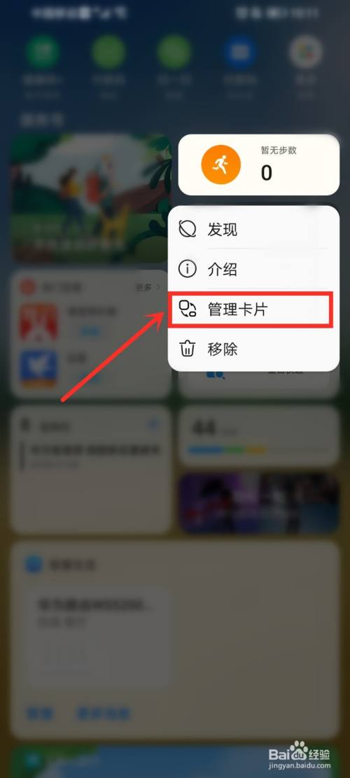 在弹出的菜单中点击【管理卡片】。