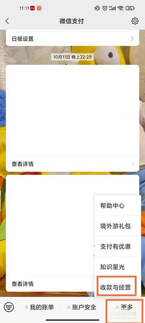 1、打开【微信】,进入【支付】,选择【更多】,选择【收款与经营】。