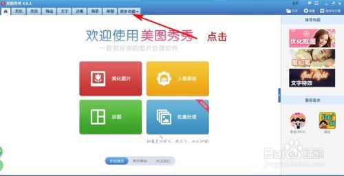 打开美图秀秀,点击标题【更多功能】