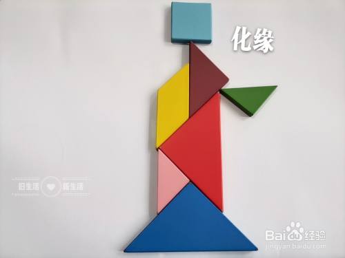 最后我们把绿色小三角形摆好,一个化缘的和尚就拼好了吩汽。