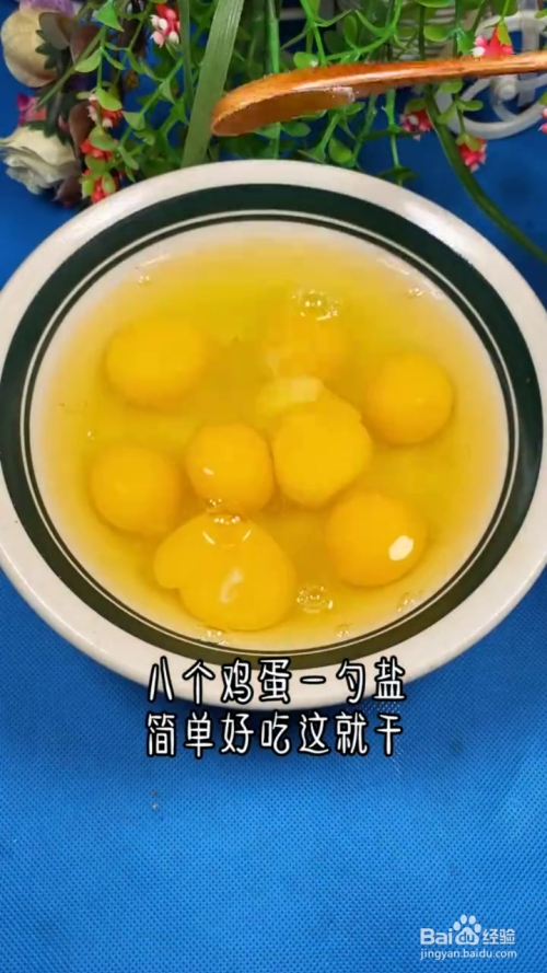 我们在鸡蛋中加入食盐,搅拌均匀后备用